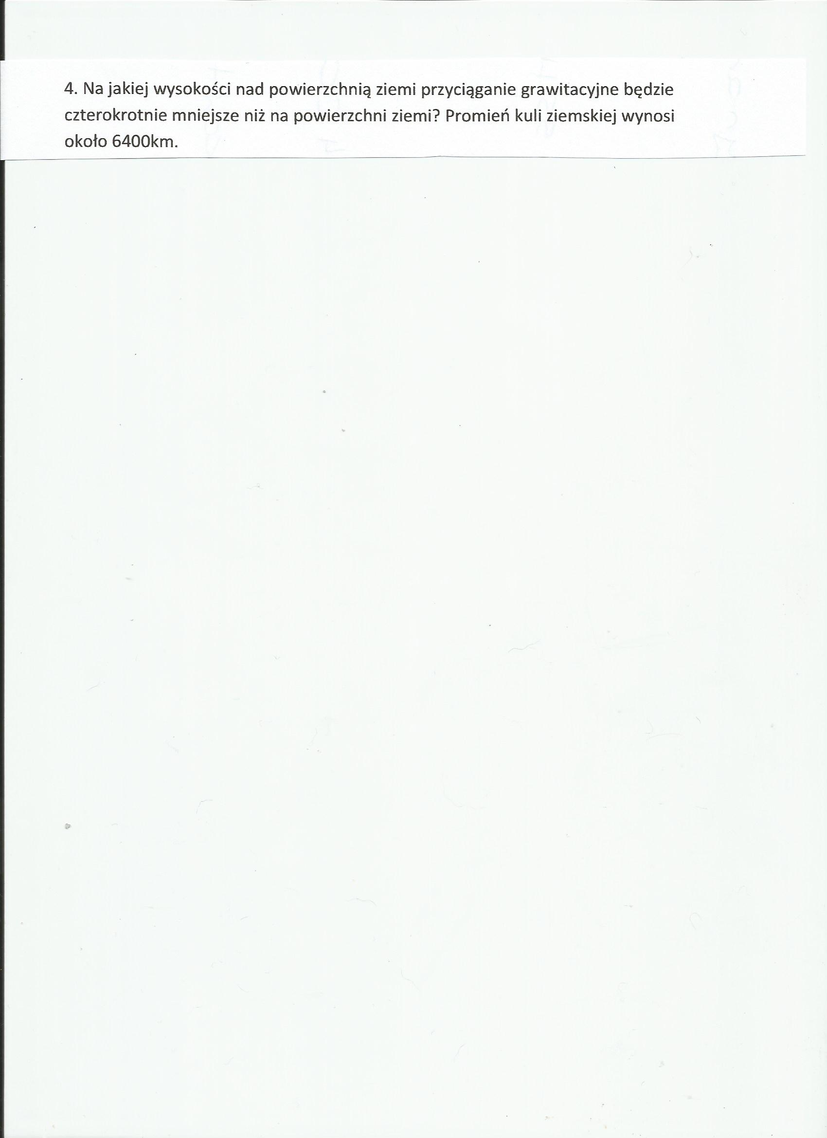 Na wysokości h nad powierzchnią Ziemi przyciąganie ma być 4 razy mniejsze.