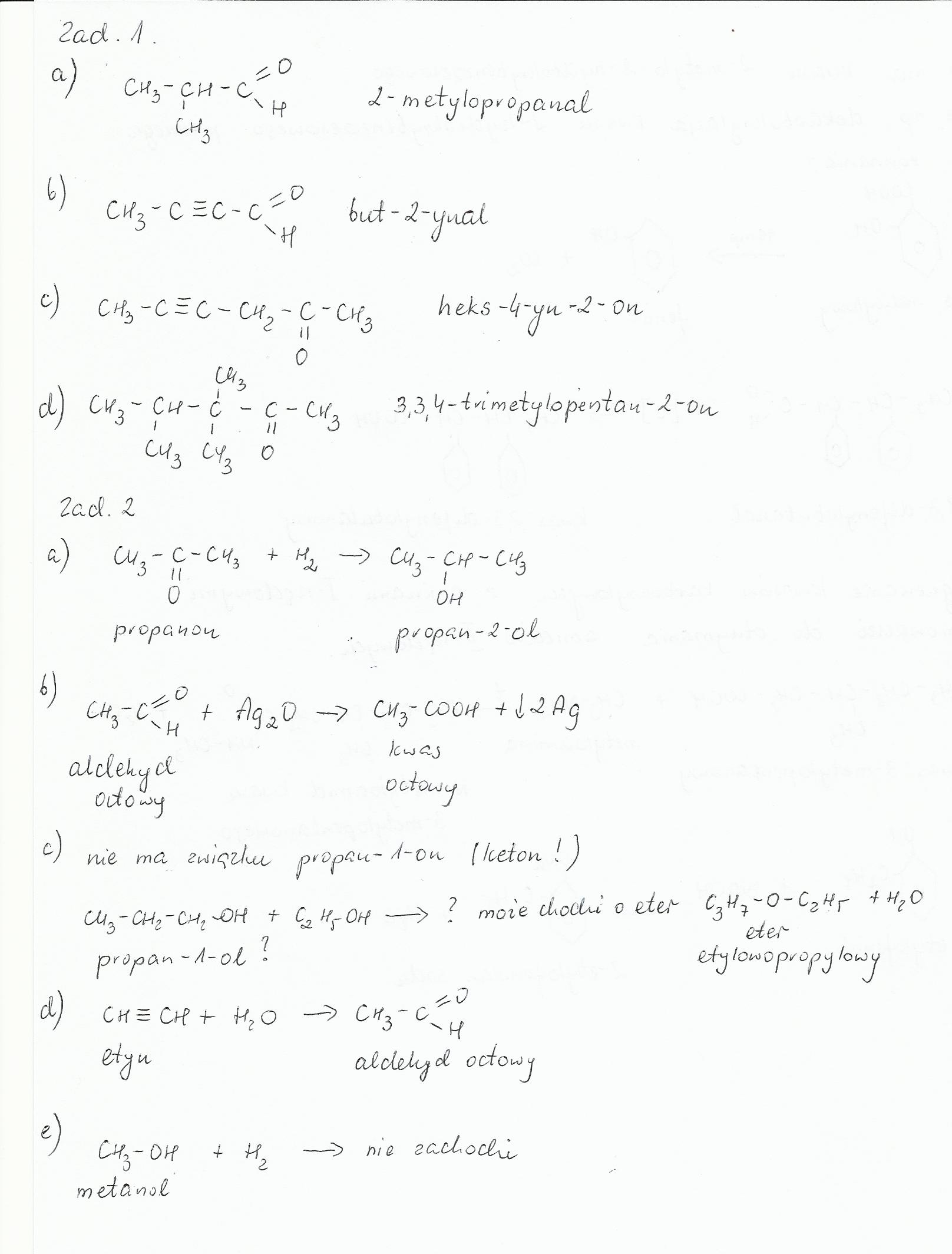 a) Propanon + wodór