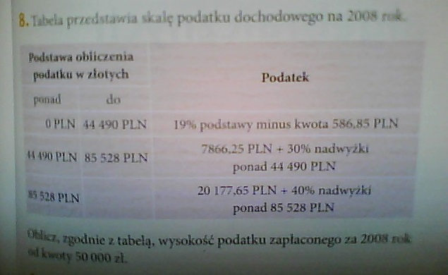 Podatek = 7 866,25+ 30% z (50 000- 44 490) = 7 866,25 + 0,3* 5 510 = 7 866,25 + 1 653 = 9 519,25 zł