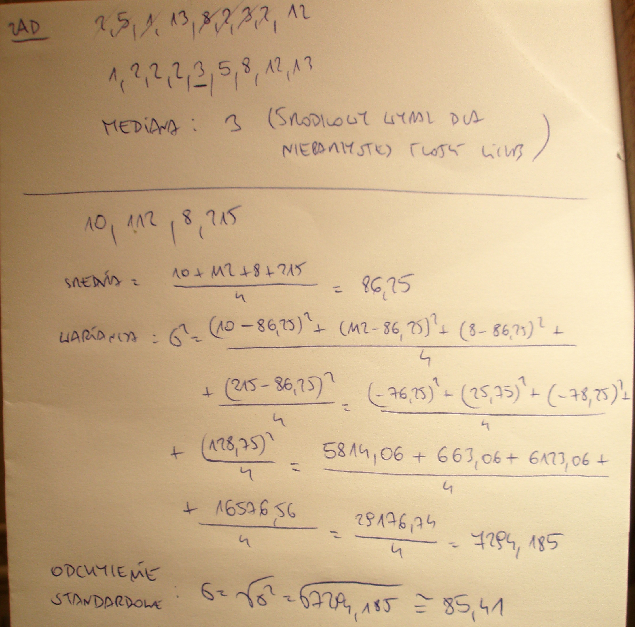 znajdź wariancję i odchylenie standardowe zestawu liczb;10,112,8,215