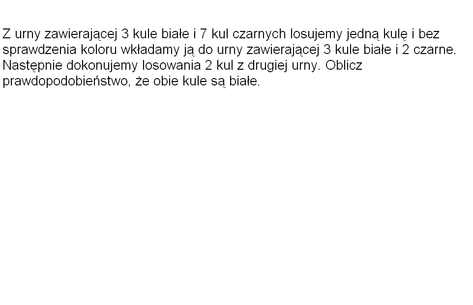 Po dodaniu kuli z pierwszej urny w drugiej urnie znajdzie się 6 kul, losujemy 2.