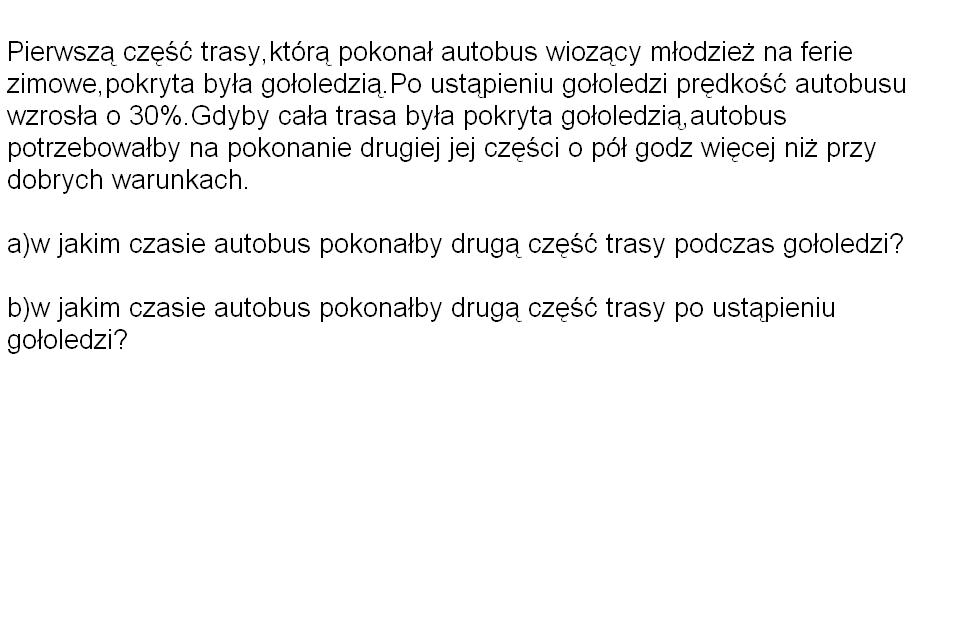 Podczas gołoledzi autobus pokona drugą część trasy w czasie 2h 10m,