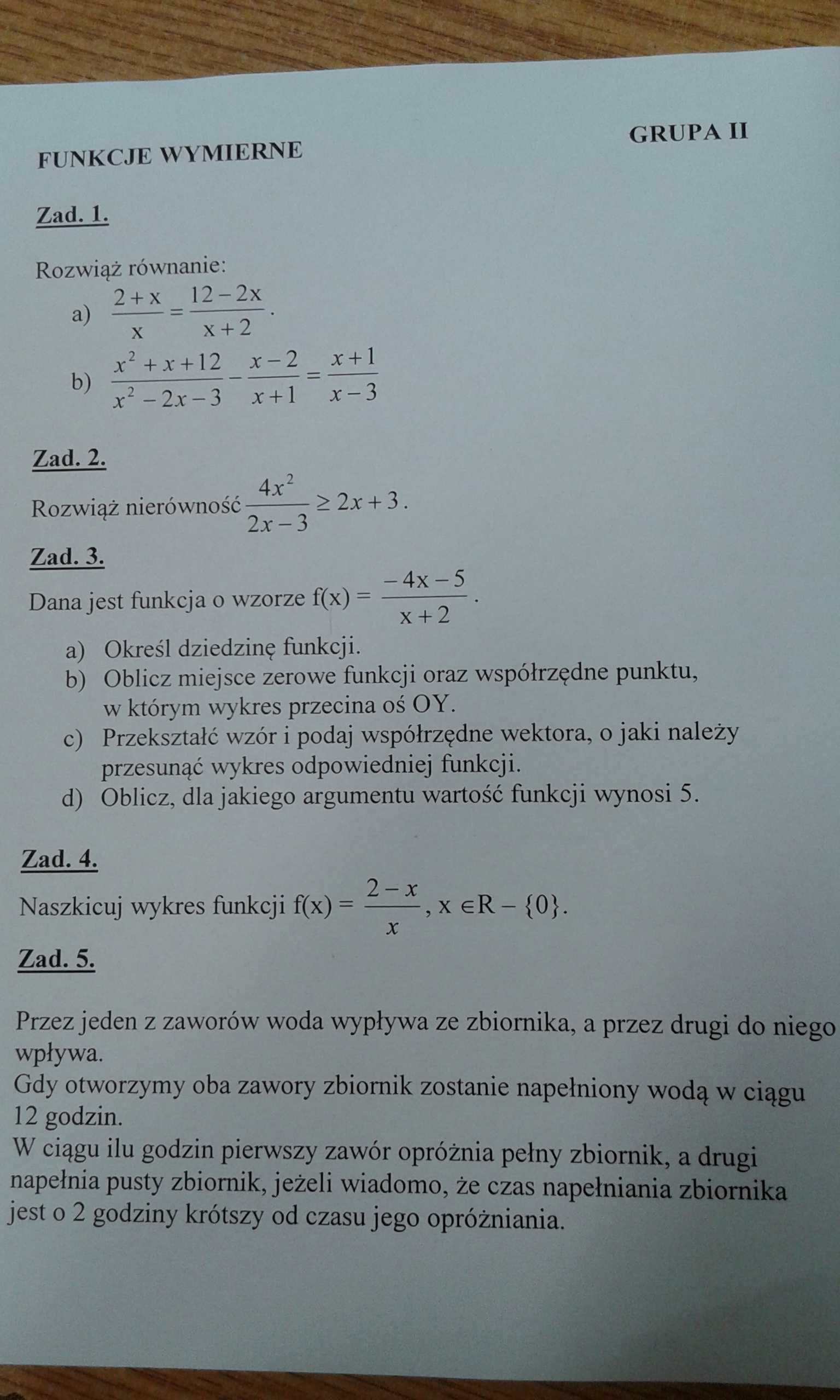 Funkcje wymierne. Zadania w załączniku . Proszę o pomoc