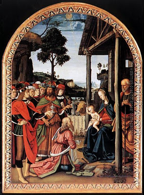 Artyści renesansu odkryli piękno natury. Przyjrzyj się pejzażowi, na którego tle rozgrywa się scena hołdu trzech króli. Jakie elementy natury przedstawił malarz?