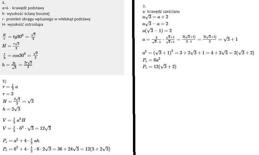 Sciana boczna ostrosłupa prawidłowego jest nachylona do podstawy, ktorej krawędź ma długość 6, pod katem 30 stopni. Oblicz pole powierzchni całkowitej i objętość tego ostrosłupa, jeżeli jego podstawa jest: