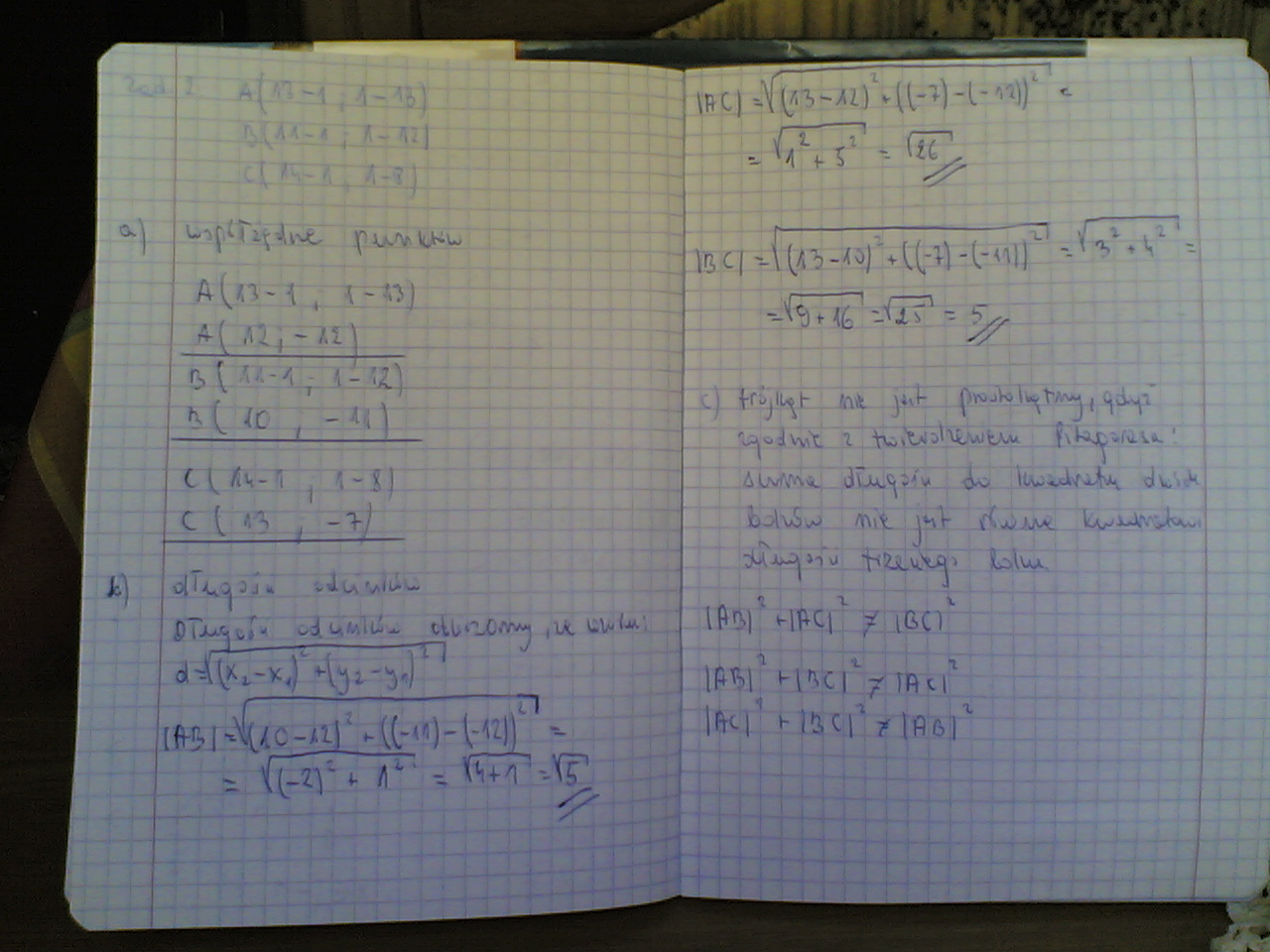 c. Sprawdź rachunkowo czy trójkąt jest prostokątny
