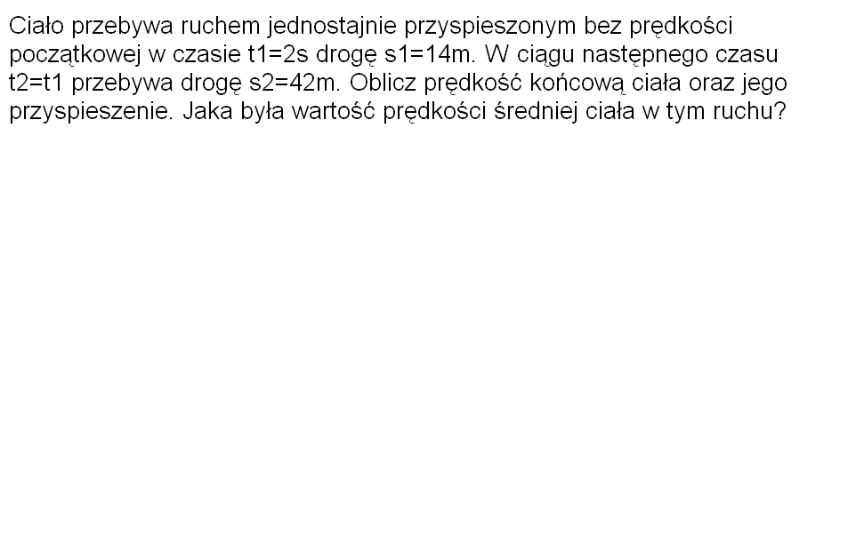 Ciało uzyskało ją po łącznym czasie t1 + t2 więc [używamy "a" obliczonego wyżej ]