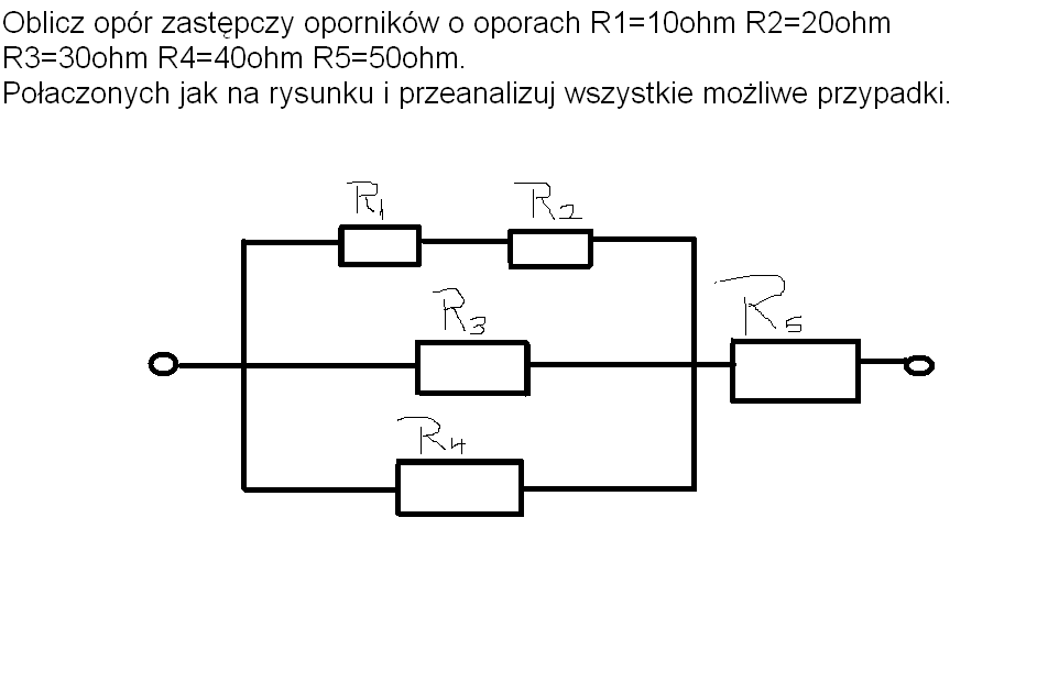 Rz + R1234 + R5 = 120 / 11 + 50 = 670 / 11 = 60 i 10/11 = około 60,9 ohm