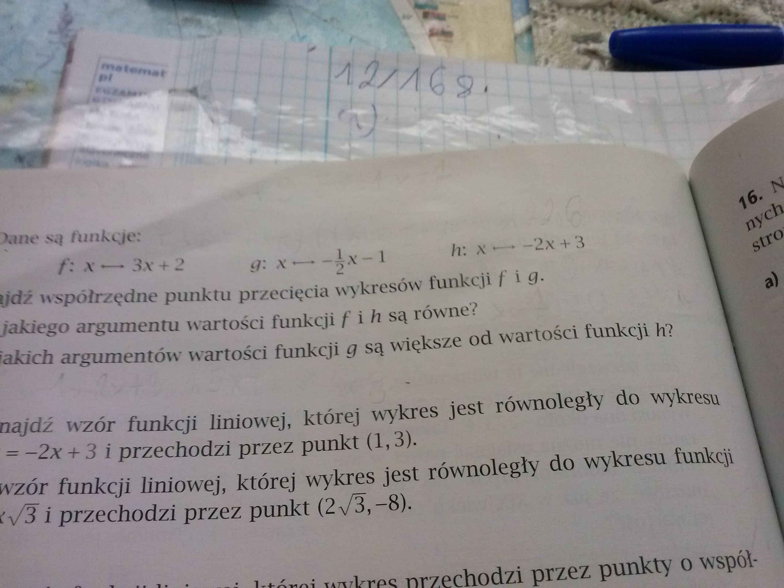 znajdz wzor funkcji liniowej , ktorej wykres jest rownolegly do wykresu funkcji i przechodzi przez punkt