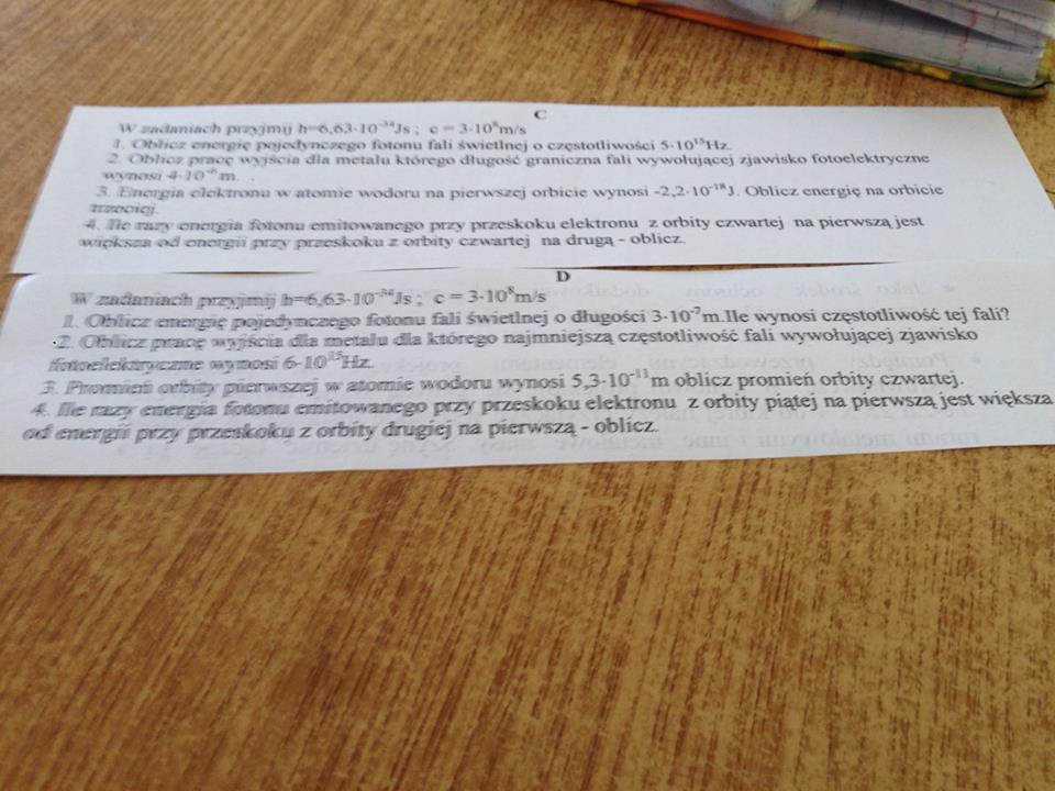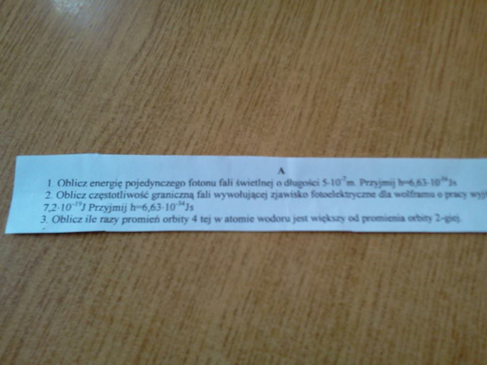 Zadanie 1 z dolnego załącznika. Mamy długość fali, więc używamy drugiego wzoru