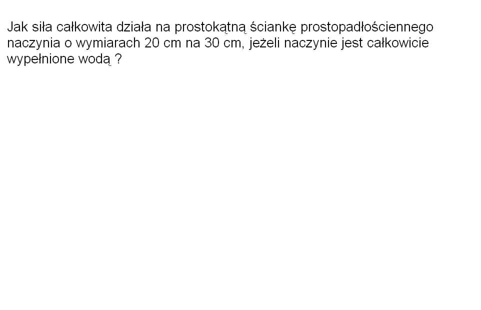 Poprzednio się czepiałem o brak trzeciego wymiaru akwarium, ale wczytałem się w zadanie i widzę, że chodzi o siłę działającą tylko na jedną ściankę, nie na wszystkie. Jednak nadal nie wiadomo, co jest wysokością, co szerokością tej ścianki, a wynik liczbowy od tego zależy. Przyjmijmy więc, że akwaria są raczej "bardziej szersze niż wyższe" i oznaczmy dane tak: