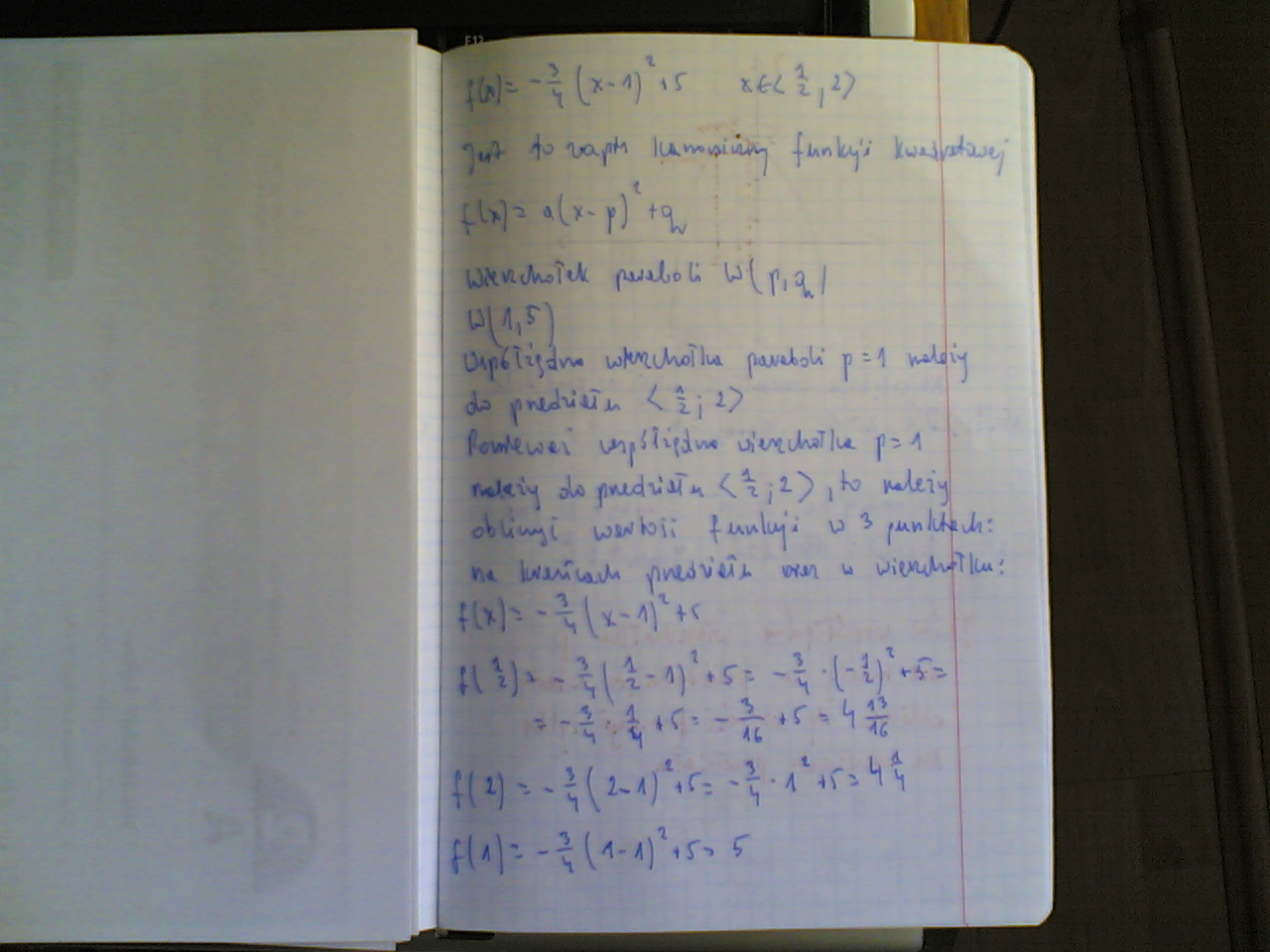 a) F(x)=-3/4(x-1)^2+5, x należy <1/2;2>