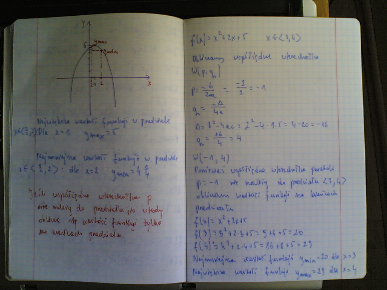 Oblicz najmniejszą oraz największą wartość funkcji f w podanym przedziale jeśli: