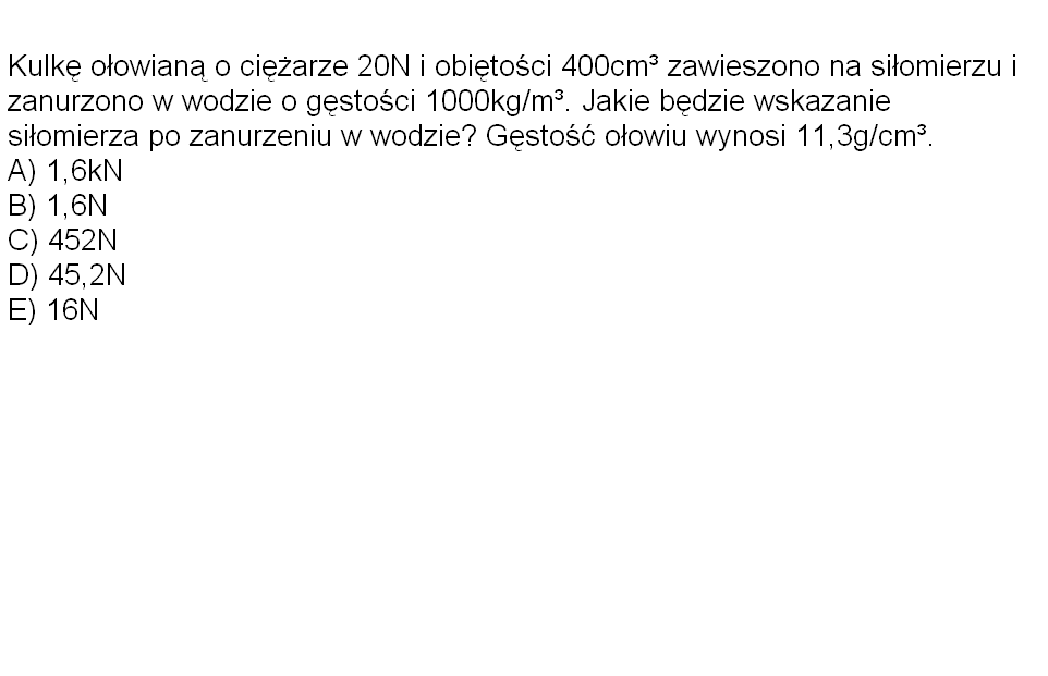 Gęstość ołowiu w tym zadaniu NIE jest potrzebna.