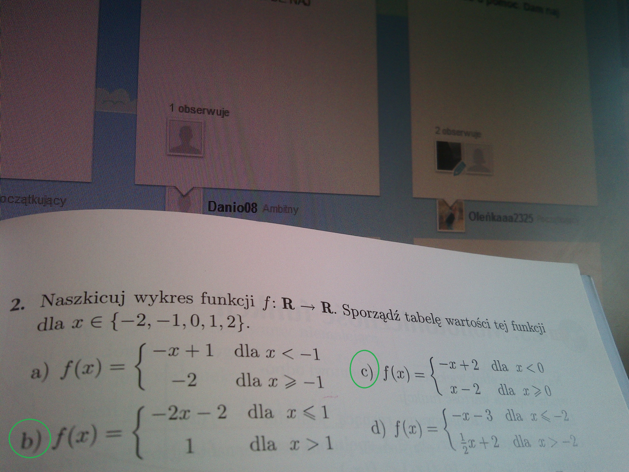 Proszę o zrobienie zadania nr. 2, zadanie jest wykonane, bo wykresy już mam, ale do wykonanych wykresów są mi potrzebne jeszcze tabelki, do przykładów b i c.
