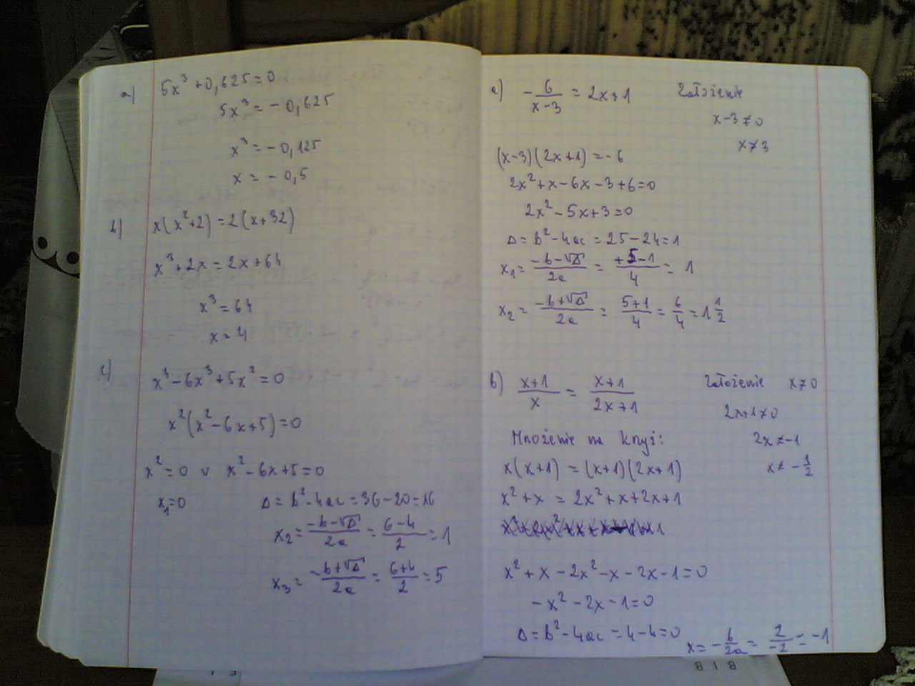 a) 5x³ + 0,625 = 0