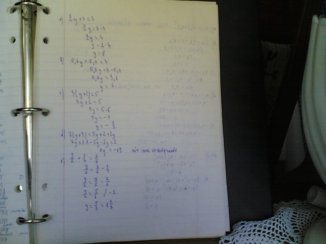 a)0,5 ( jedna druga w ułamku zwykłym)y+ 3 = 7