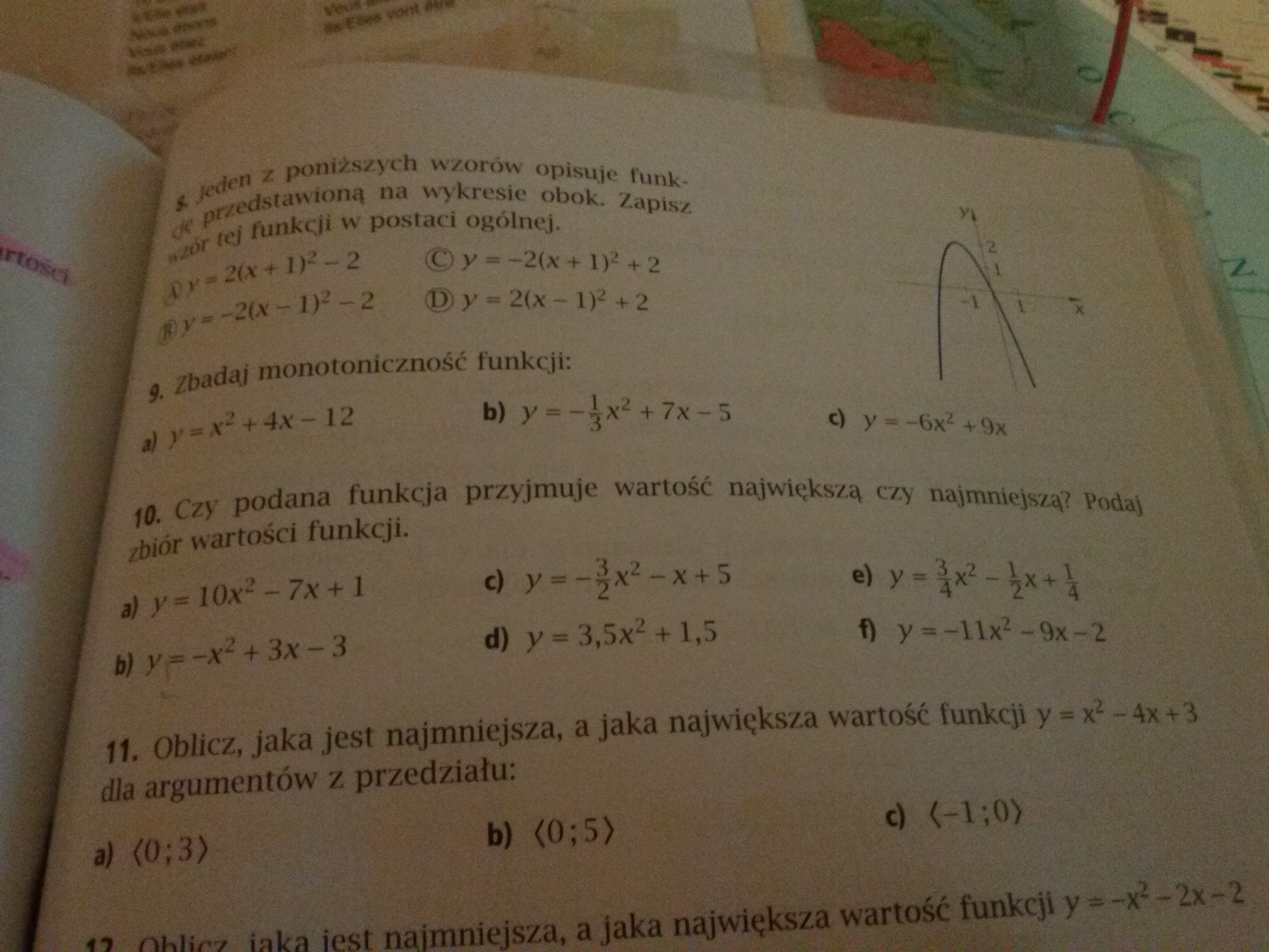 zadanie 10.czy podana funkcja przyjmuje wartosc najwieksza czy najmniejsza ? podaj zbior wartosci