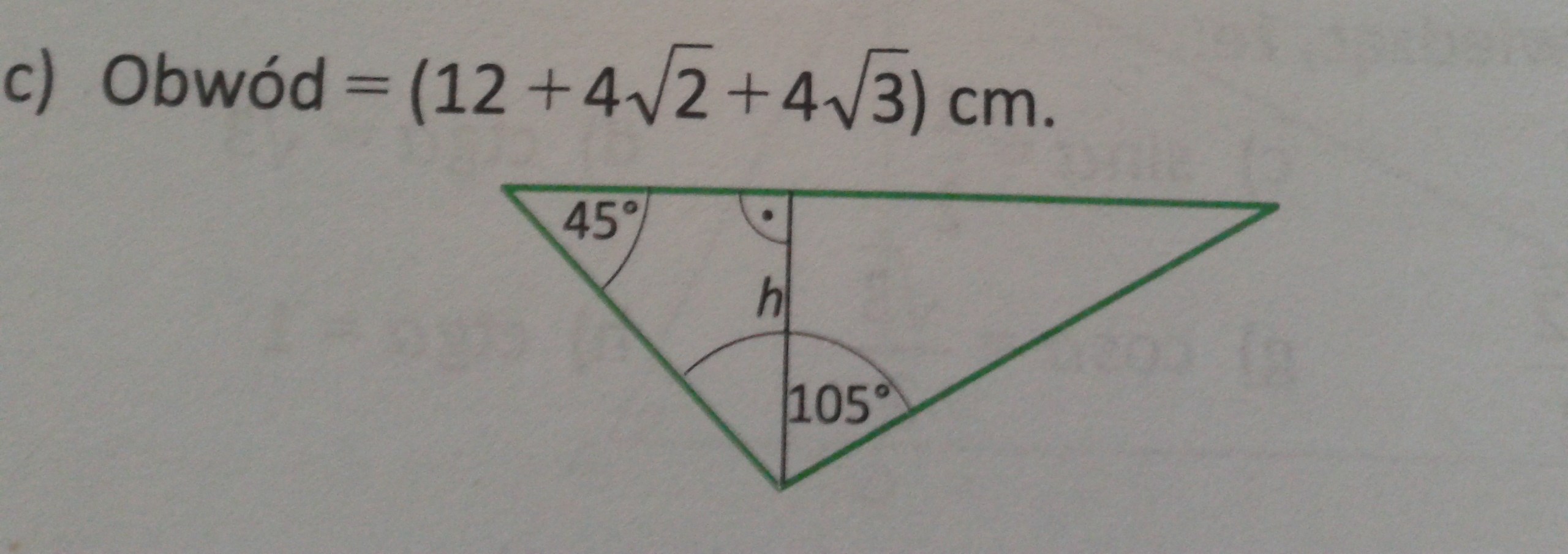 co natychmiast daje odpowiedź h = 4 [ bo krótszy bok przy kącie 45 stopni