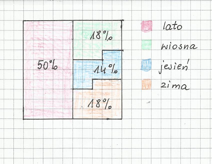 Prosze !! musze zroić wykres oprócz słupkowego kołowego diagram musi byc o porach roku wiosna 18% lato 50 % jesień 14% i zima 18% prosze bardzooo ;)