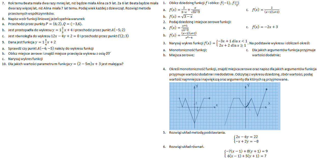 funkcja liniowa y=ax+b jest malejąca , gdy współczynnik a<0