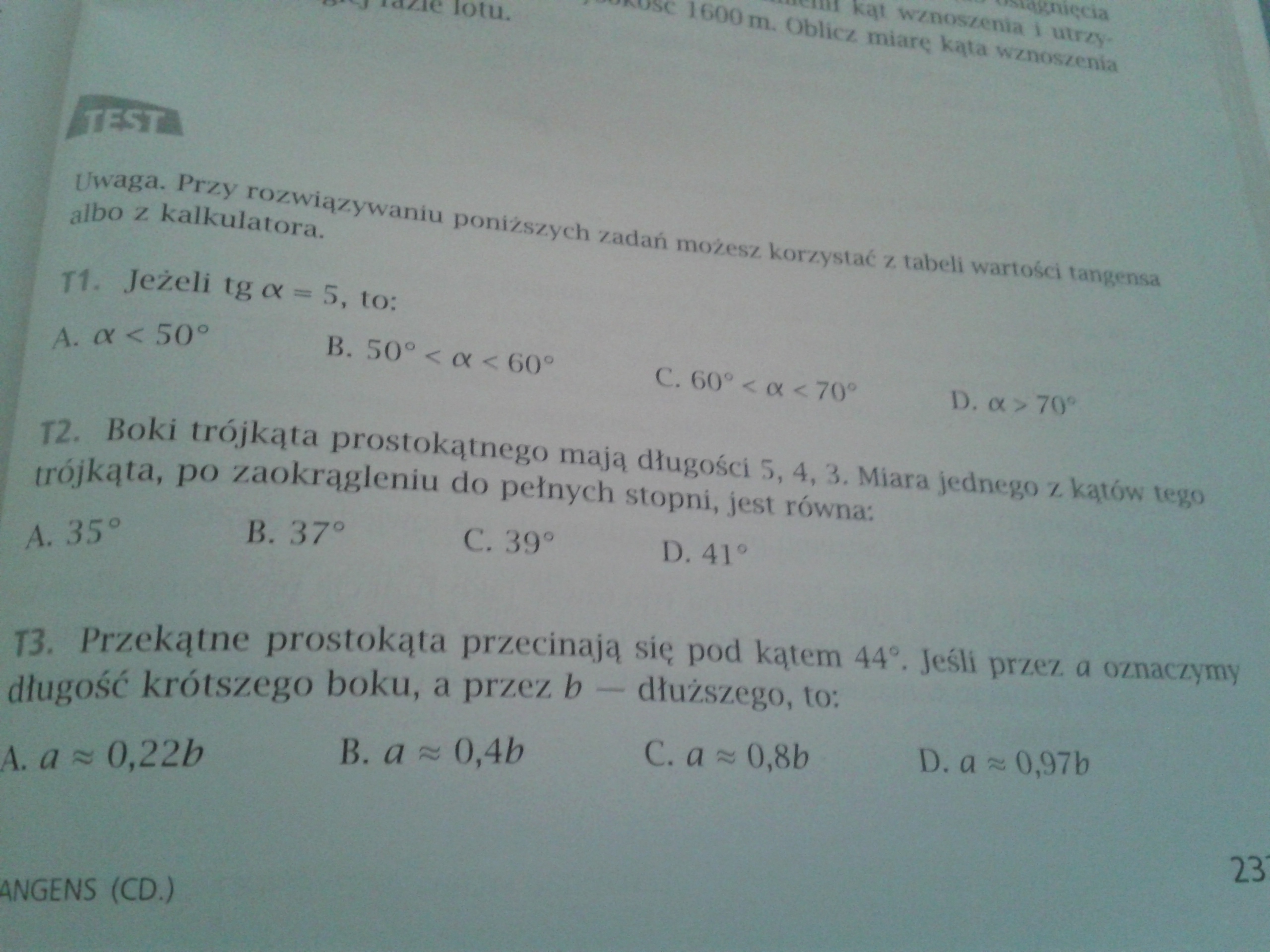 Trygonometria zadania z załącznika T1 , T2 i T3