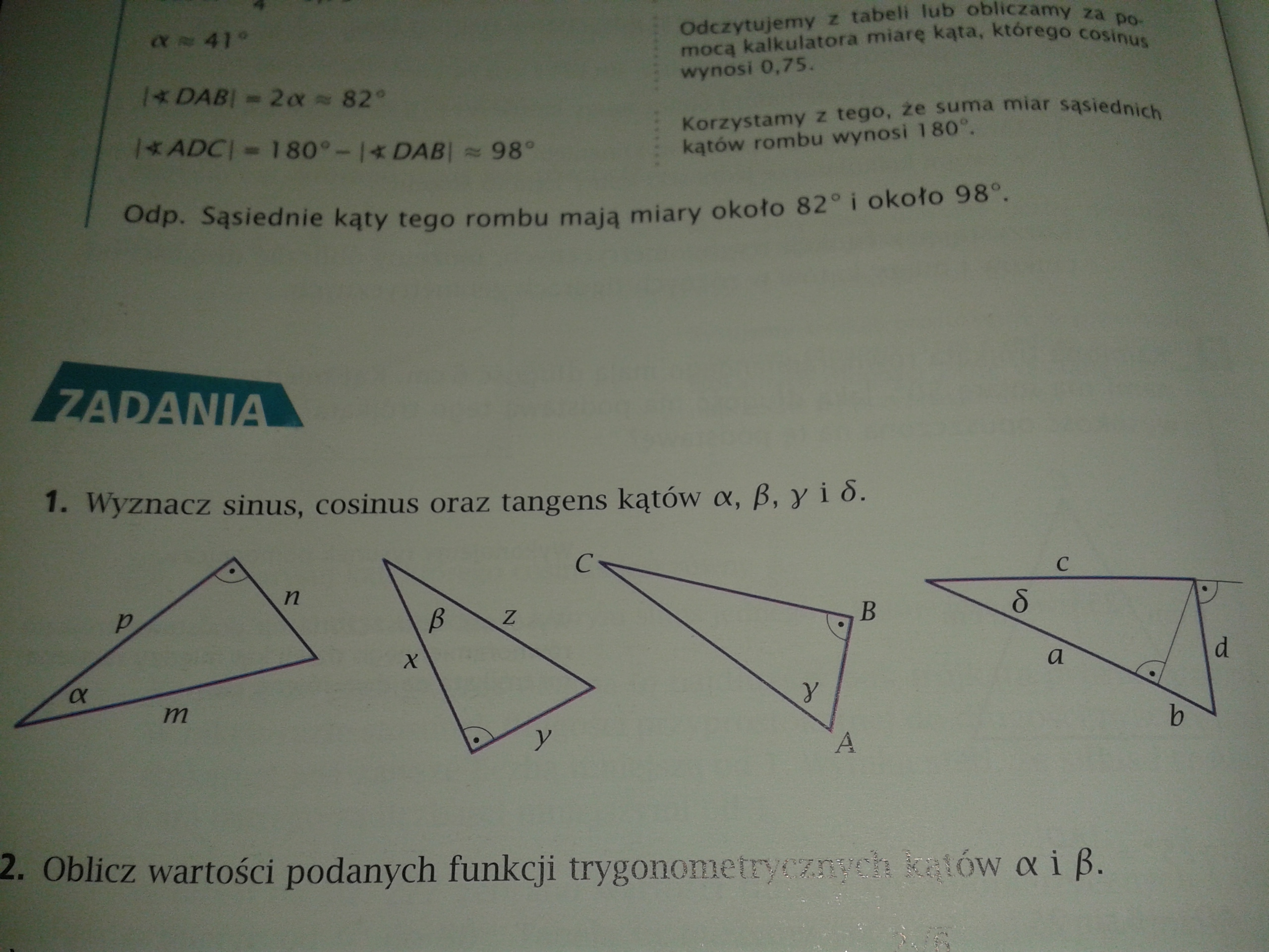 Wyznacz sinus , cosinus oraz tangens kątów alfa , beta , gamma i o z takim u góry ....