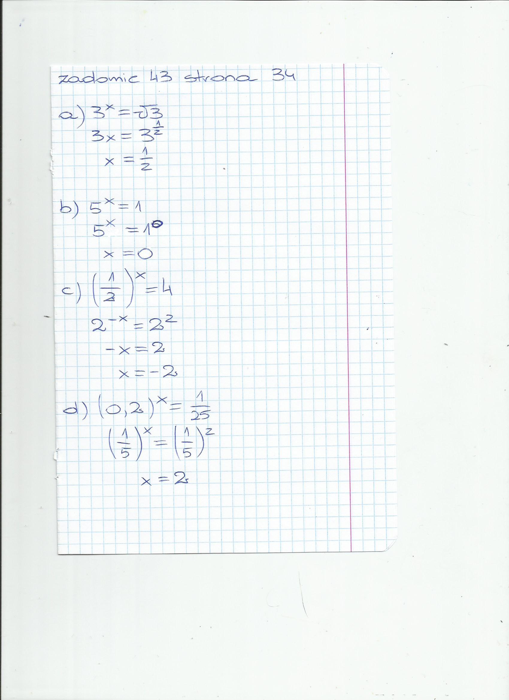 podstawy takie same więc je opuszczamy i otrzymujemy: