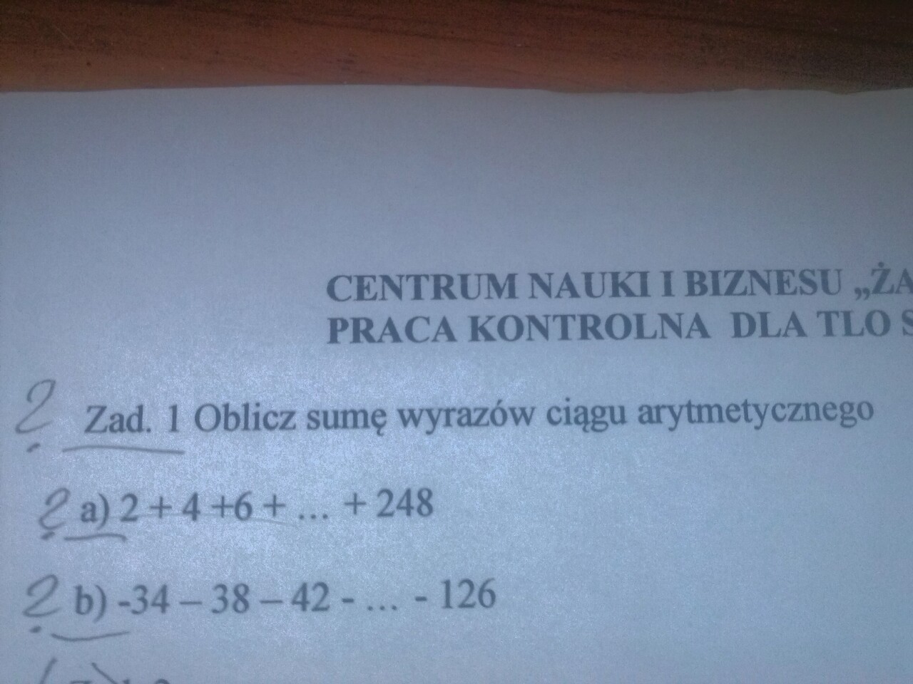 Zad.1 Oblicz sumę wyrazów ciągu arytmetycznego