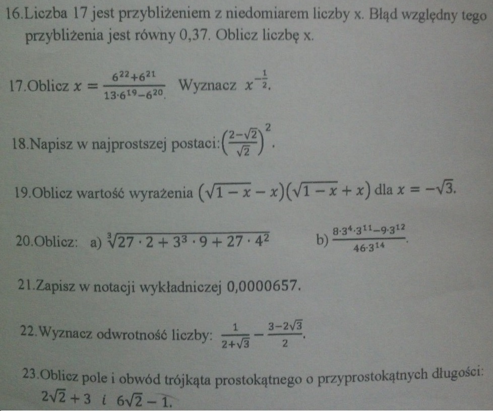 Liczba 17 jest przybliżeniem z niedomiarem... (zadania w załączniku)