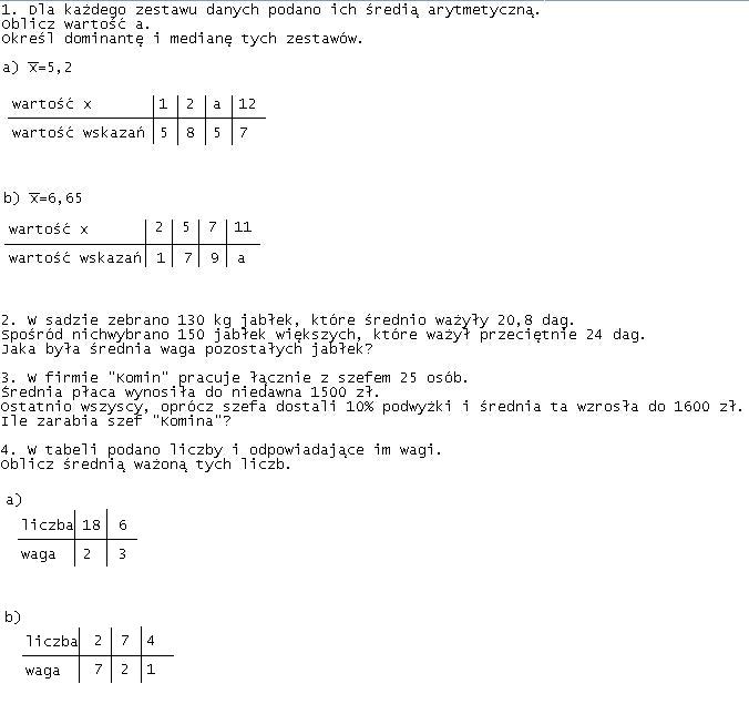 Używamy wzoru na średnią jak wyżej i dostajemy (podstawiamy w4 = a)