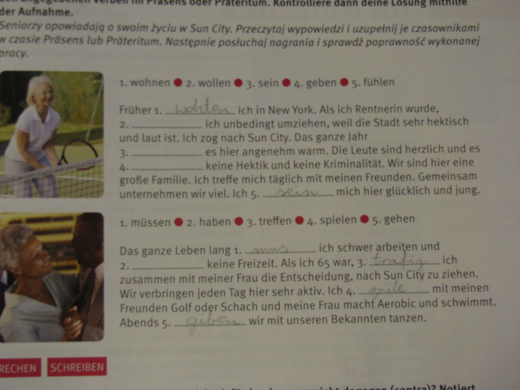 Das ganze Leben lang musste ich schwer arbeiten und hatte ich keine Freizeit. Als ich 65 war, traff ich ... Ich spiele mit meinen Freunden Golf ... Abends gehen wir...