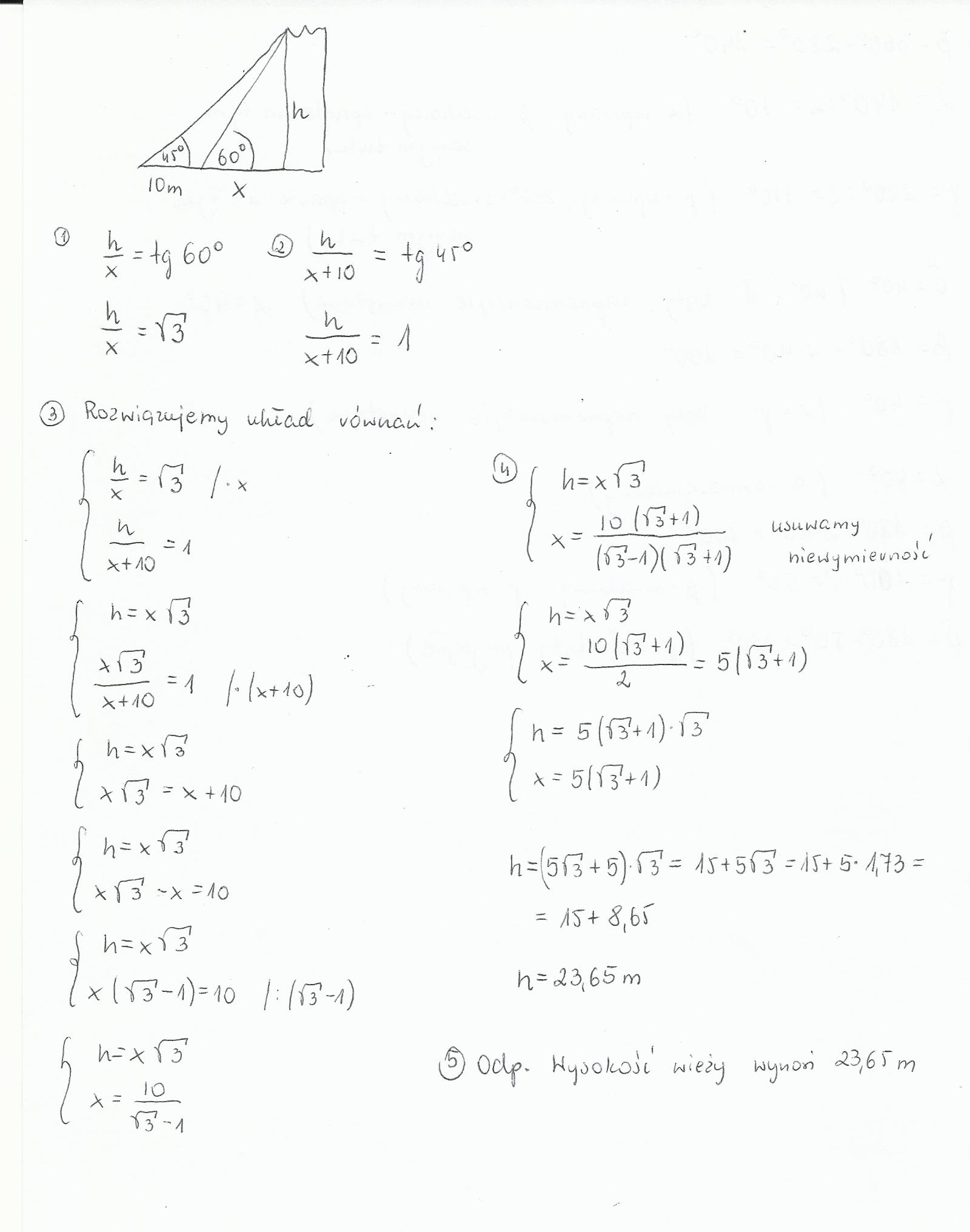 korzystając z informacji podanych na rysunku oblicz wysokość wieży. jest to zadanie 8 w załączniku.