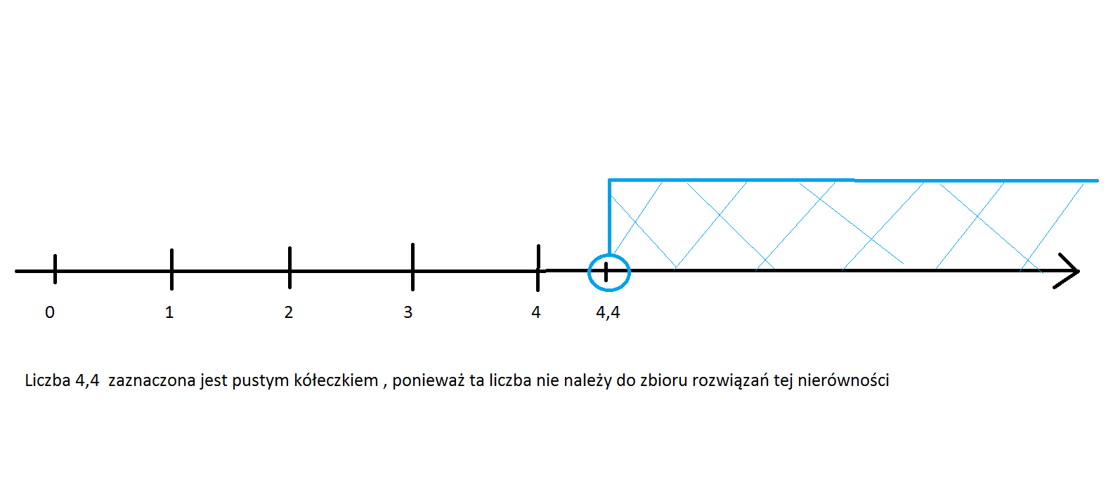 -2(5-x)+1,2>0 -10 + 2x + 1,2 > 0 2x - 10 + 1,2 > 0 2x - 8,8 > 0 2x > 8,8 x > 8,8 : 2 x > 4,4 spr, dla x= 6 -2( 5 - x) + 1,2 >0 -2(5 - 6) + 1,2 > 0 -2 * (-1) + 1,2 > 0 2 + 1,2 > 0 3,2 >0 rysunek osi w załączniku