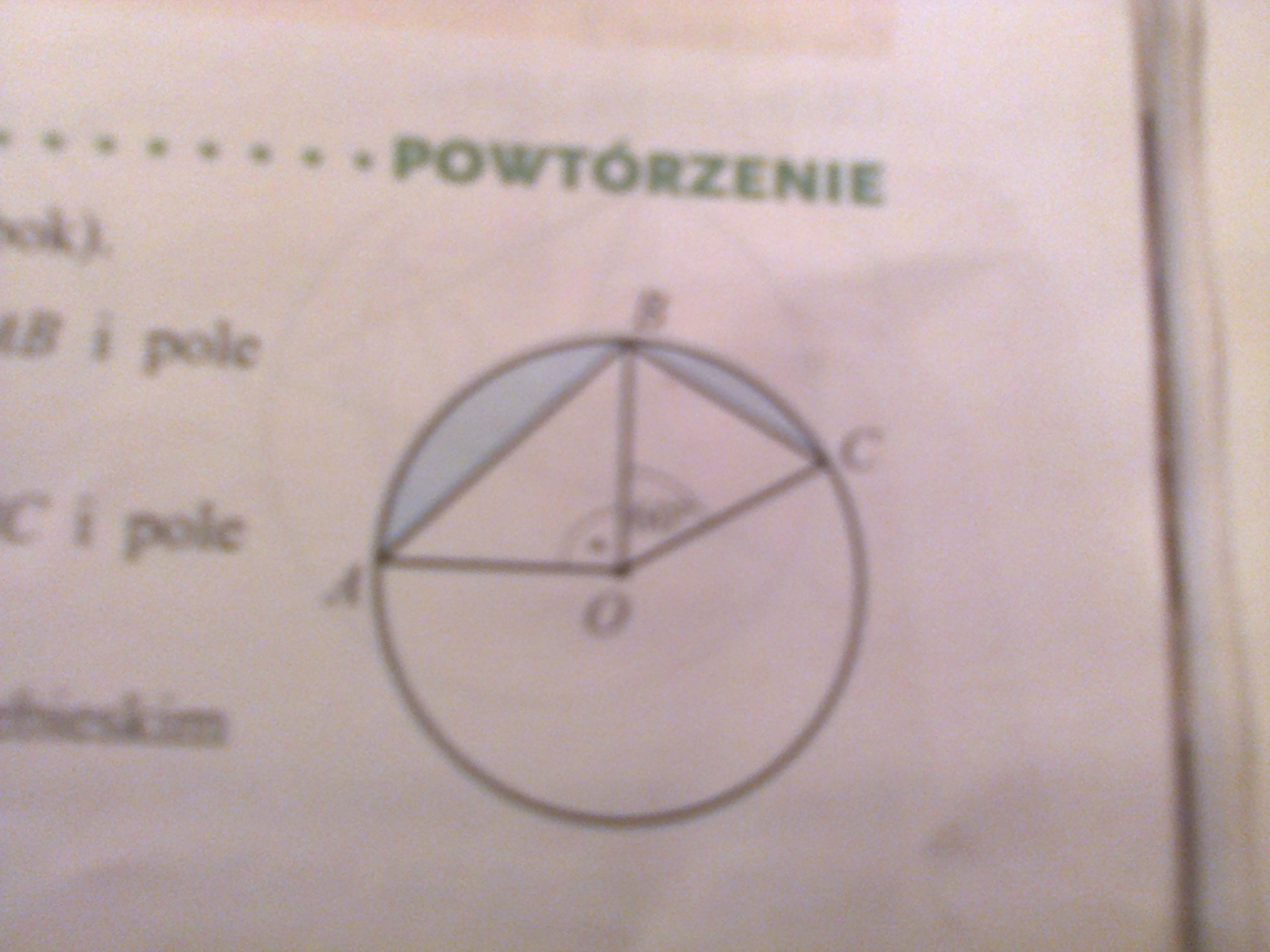 b) Oblicz dlugość łuku BC , długośc cięciwy BC i pole wycinka wyznaczonego przez kąt BOC
