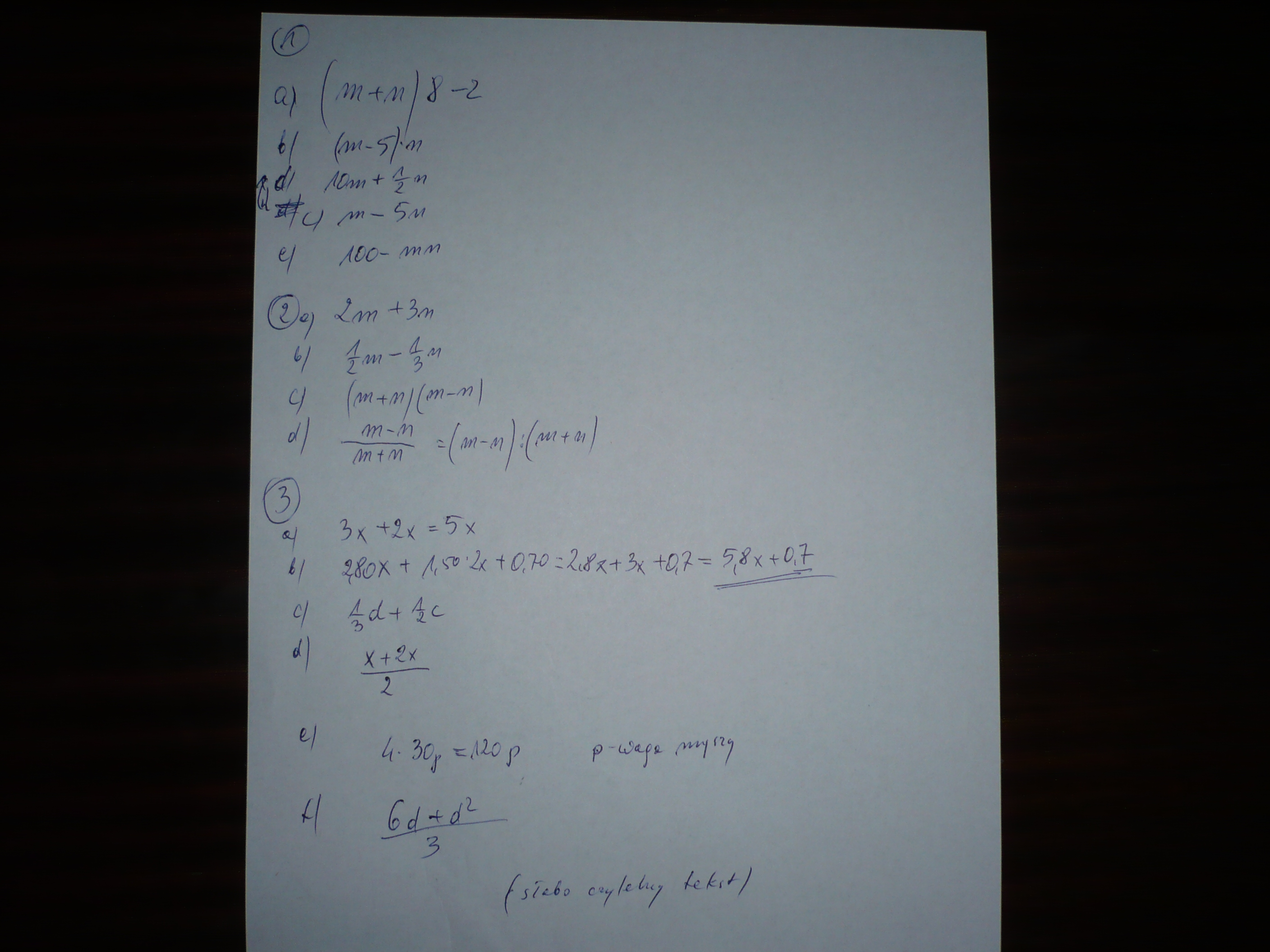 a) Sumę liczb m oraz n mnożymy przez 8 i od otrzymanego iloczynu odejmujemy 2
