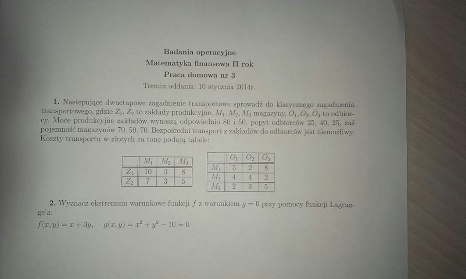 POMÓŻCIE - BADANIA OPERACYJNE. OD TEJ PRACY DOMOWEJ ZALEŻY MOJE ZALICZENIE Z PRZEDMIOTU!