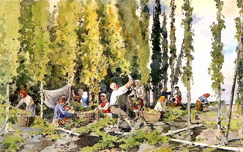 Interpretacja obrazu Juliana Fałata "Zbieranie chmielu". Proszę o pomoc!