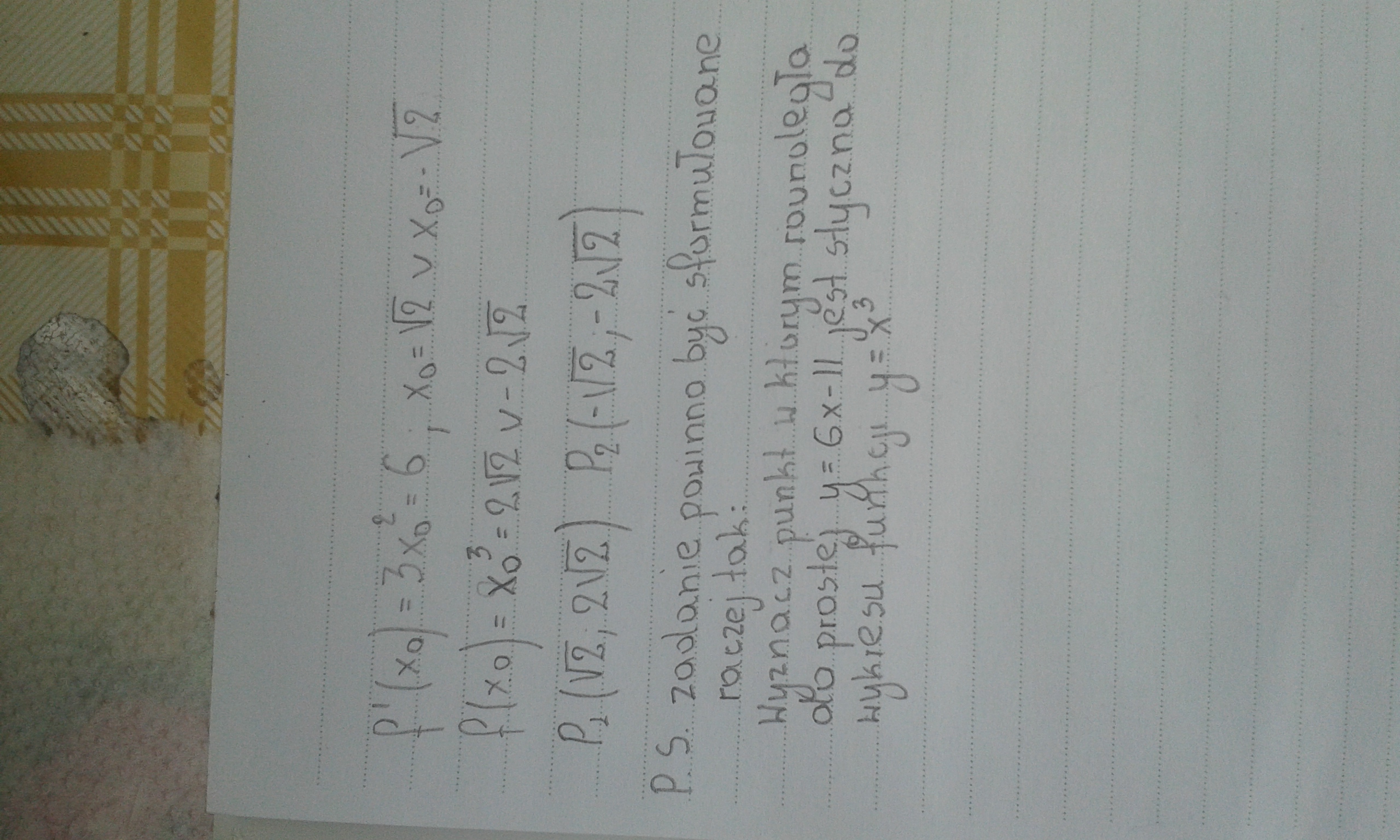 Wyznacz punkt (x0,f(x0)), w którym styczna do wykresu funkcji f jest równoległa do prostej y= 6x-11.