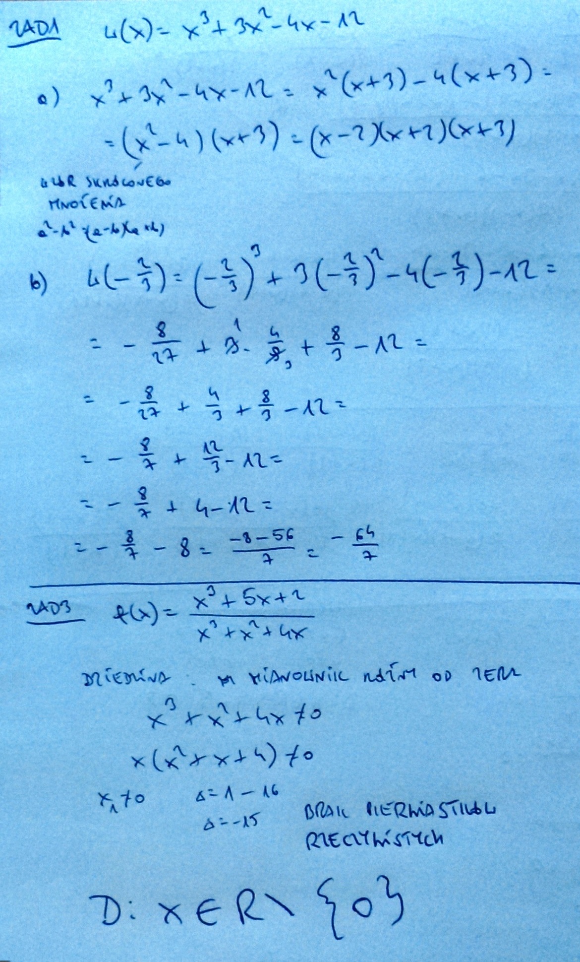 1.Dany jest wielomian w(x)=x^3+3x^2-4x-12