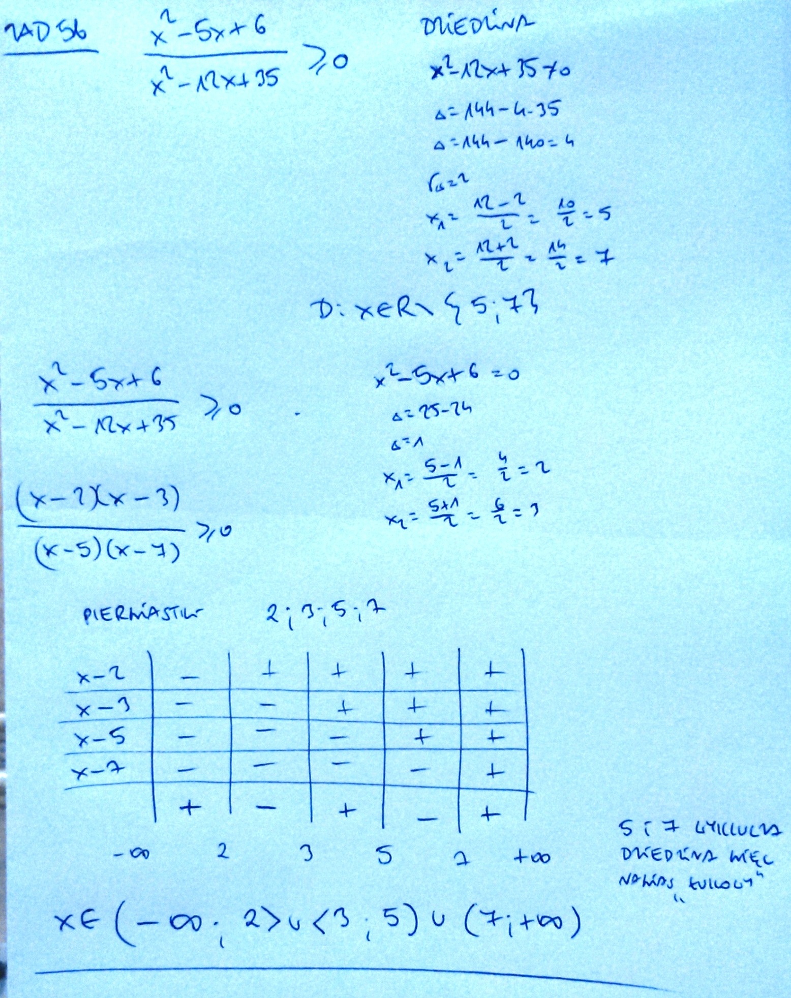 b) x^2-5x+6 kreska uł. x^2-12x +35 większe bądź równe 0