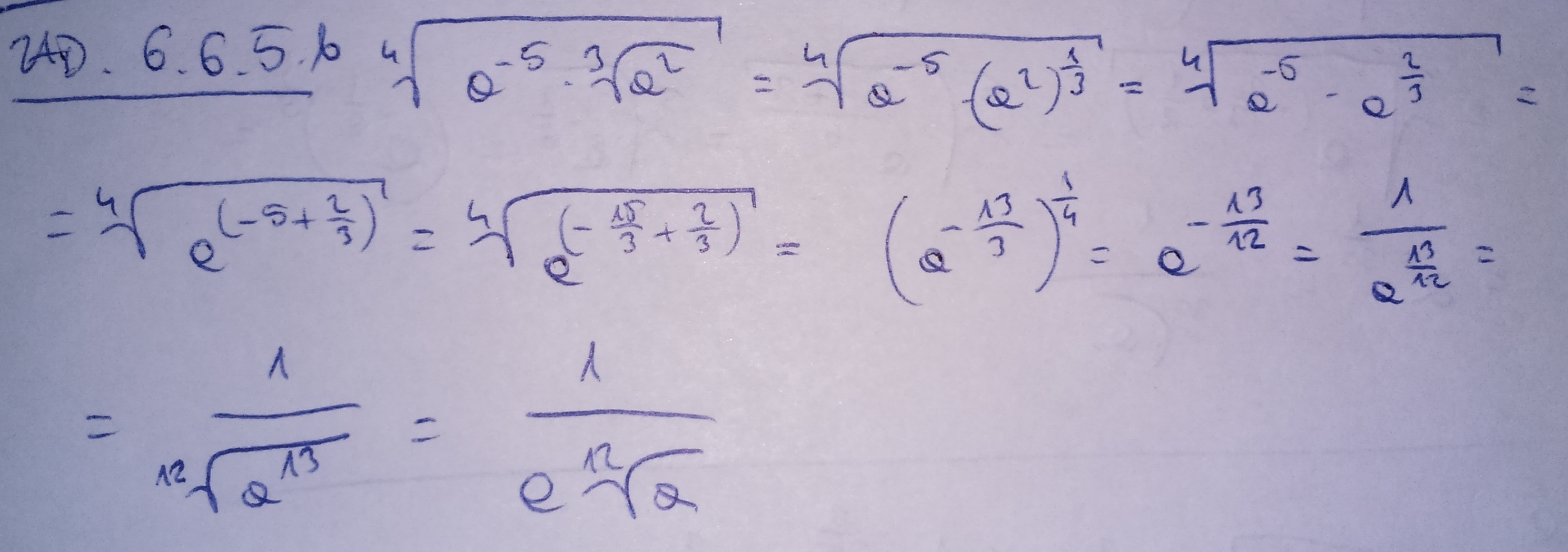= a^{-5/4}\cdot a^{2/(3\cdot 4)}= a^{-5/4 + 2/12} = a^{-13/12}=\frac{1}{a\,\sqrt[12]{a}}