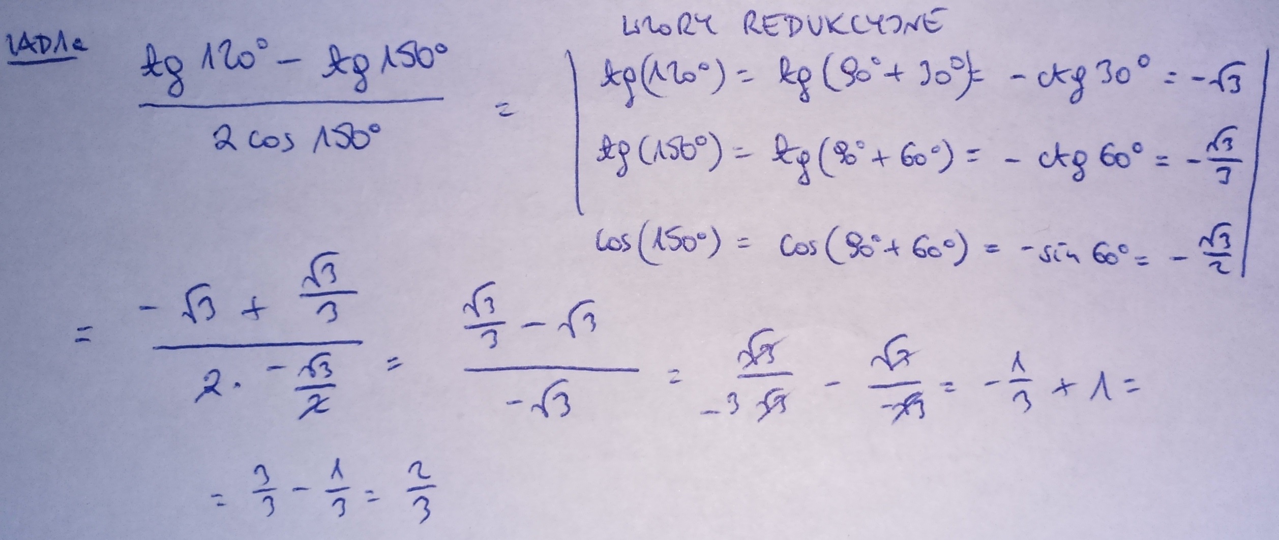 a) tg 120°- tg150°/ 2 cos 150°