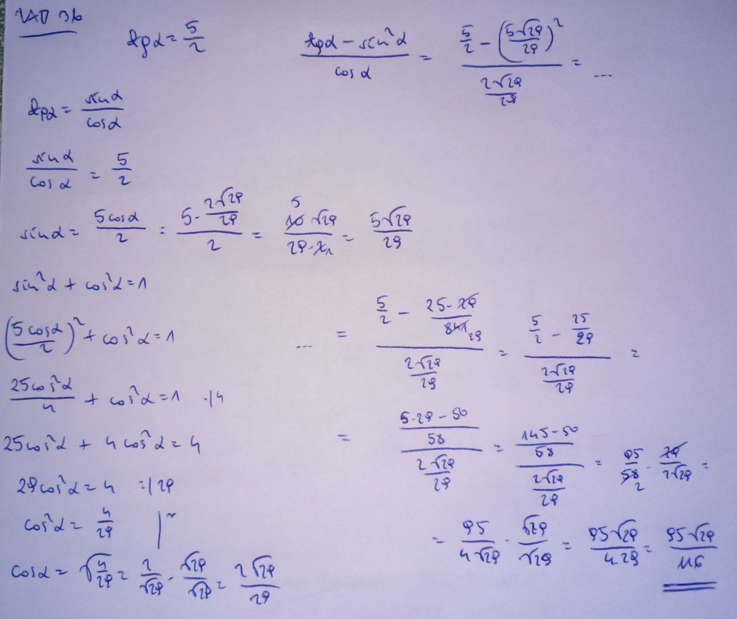 b) Kąt alfa jest ostry , a tgalfa = 5/2 oblicz :