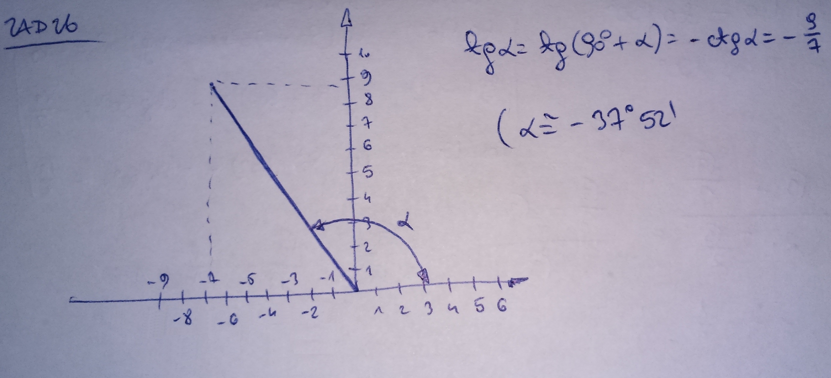 b) Punkt P leży na ramieniu końcowym kąta alfa . Przedstaw ten kąt na rysunku. Oblicz wartości jego funkcji trygonometrycznych jeżeli P (-7,9)