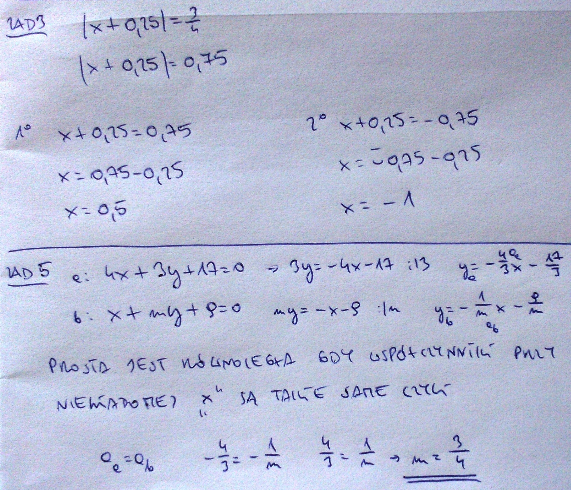 dla jakich wartości parametru m , prosta 4x+3y+17=0 jest równoległa do prostej x+my+9=0