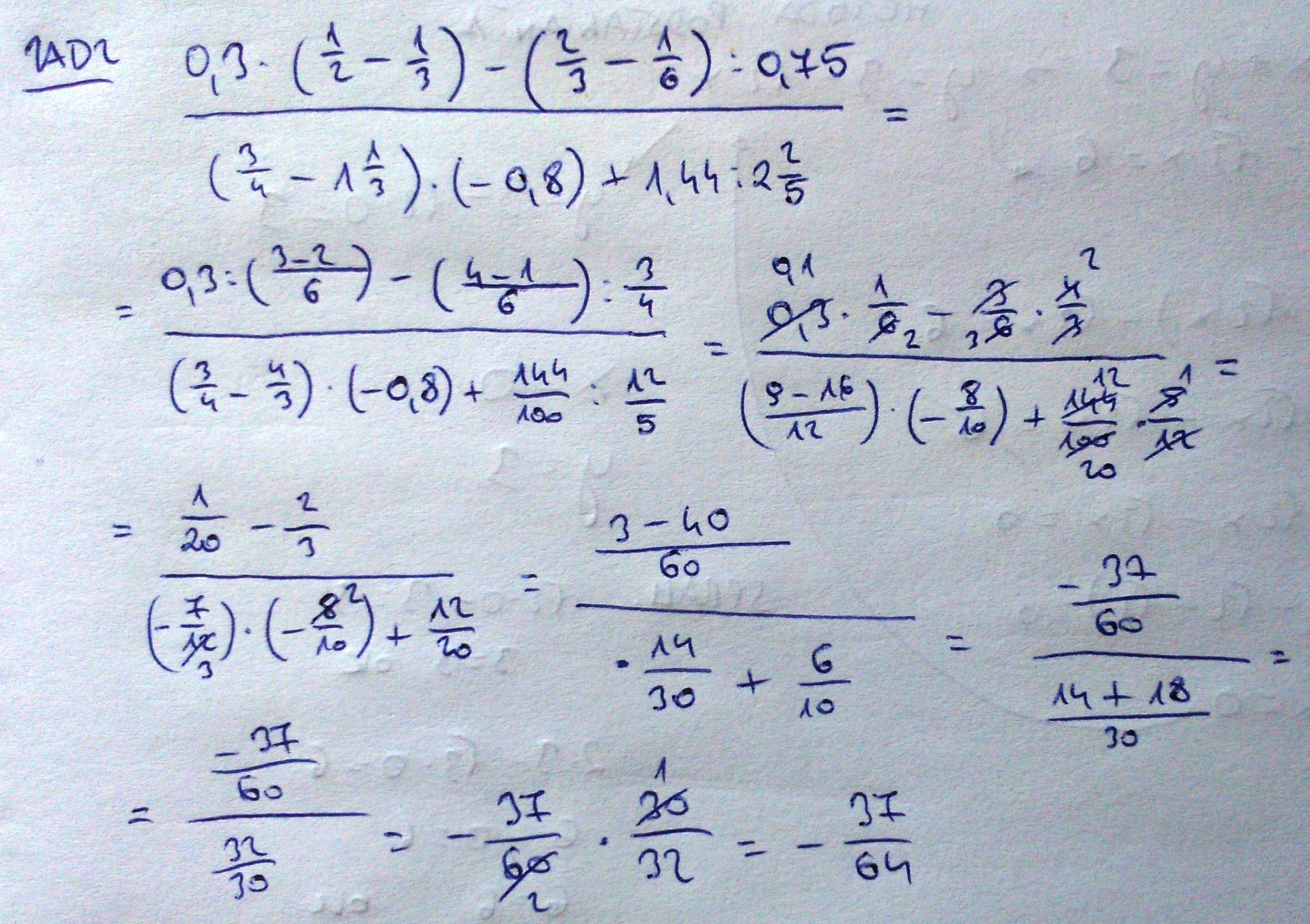 oblicz 0,3 x(JEDNA DRUGA - jedna trzecia) - (dwie trzecie - jedna szósta) :0,75 pod spodem kreska ułamkowa długi i ( trzy czwarte - 1 cała i jedna trzecia ) x ( -0,8 )+1,44 : 2 i dwie piąte = ??????