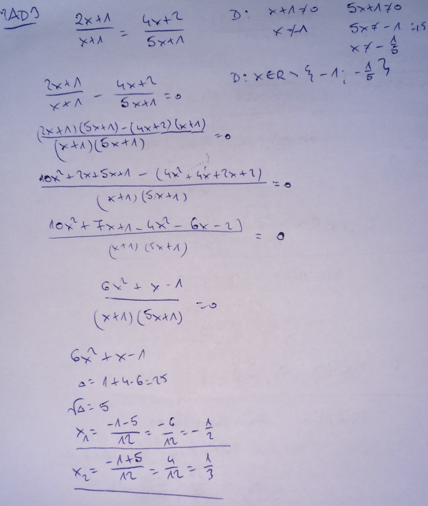2x+1/x+1 = 4x+2/5x−1