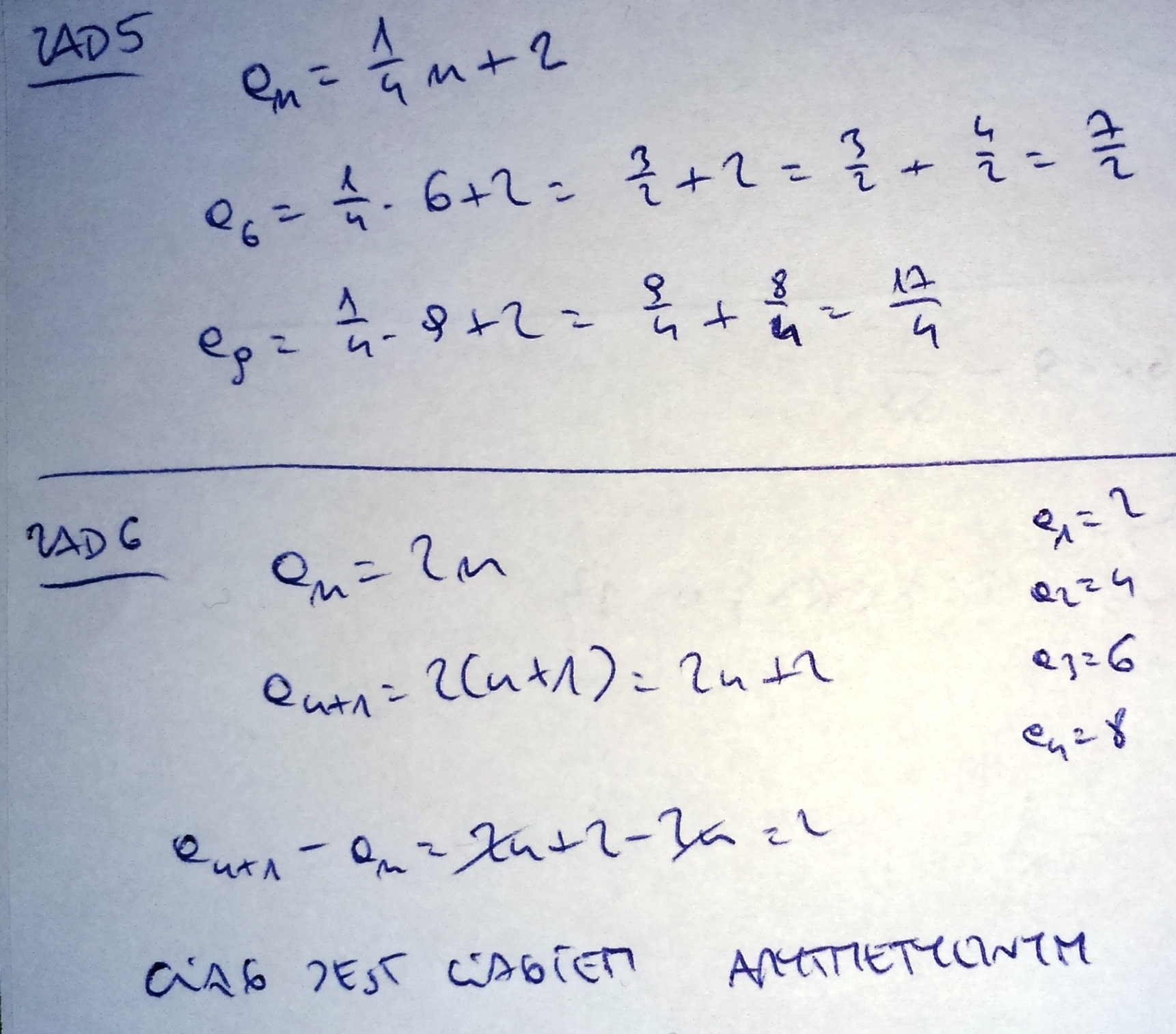 6. Zbadaj czy ciąg an jest ciągiem arytmetycznym jeśli an=2n