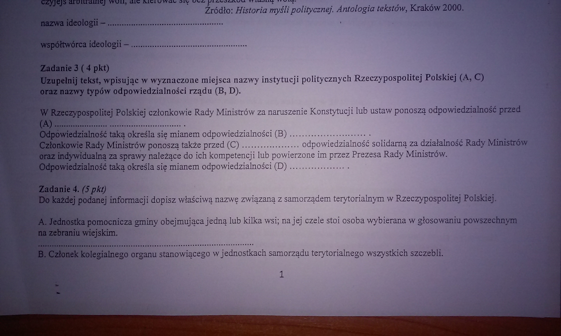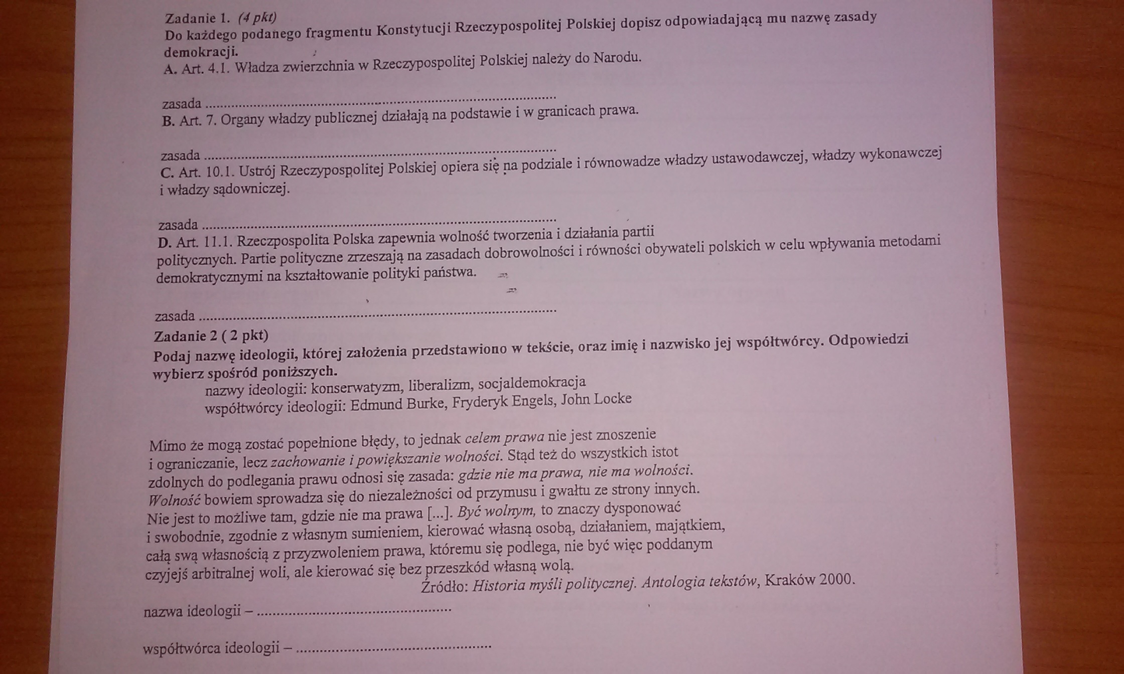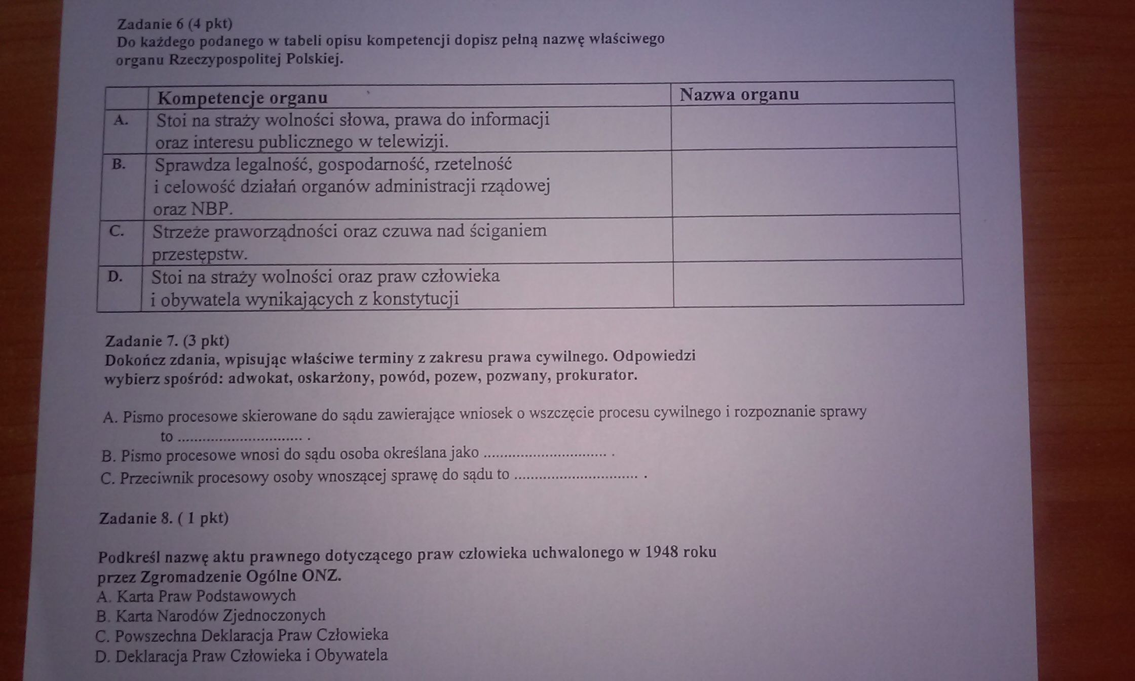 Bardzo proszę o pomoc przy pracy kontrolnej z WOS
